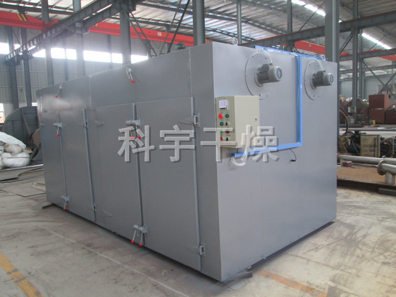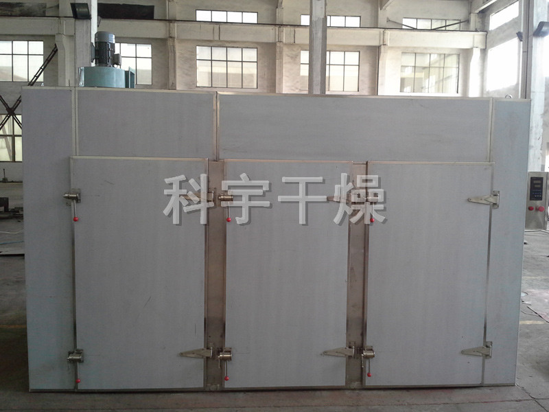 大部分热风在箱内循环,热效率高,节约能源。利用强制通风作用,箱内设有可调式分风板,物料干燥均匀,热源可采用蒸汽、热水、电、远红外,选择广泛。整机噪音小,运转平衡。温度自控,安装维修方便。适用范围广,可干燥各种物料,是通用干燥设备。