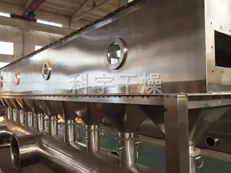 洁净的热风经阀板分配进入床体内,从加料器进入的湿物料被热风形成沸腾状态。由于热风与物料广泛接触,增强了传热传质的过程,因此在较短时间内就可干燥。如用连续型,物料从床体的一头进入,经过几十秒至几分钟沸腾干燥,自动从床体另一头流出。本设备一般进行负压操作。