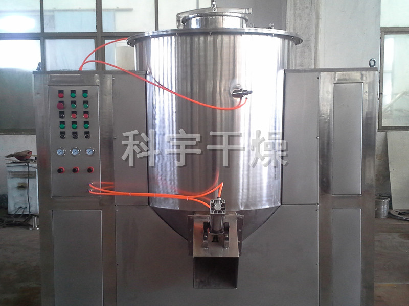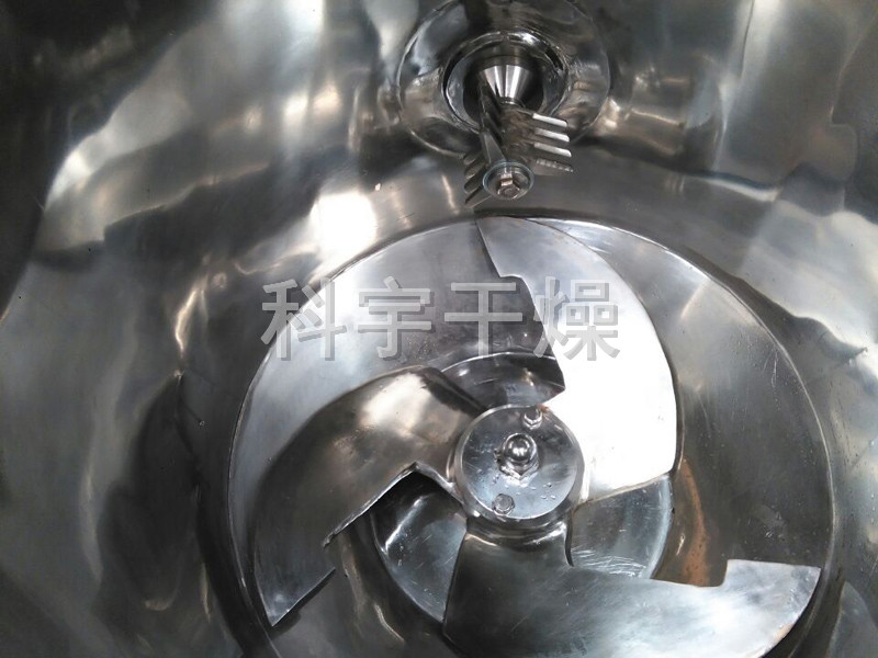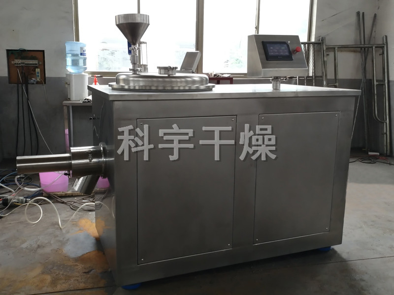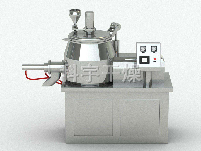 粉体物料与粘合剂在圆筒形容器中由底部混合浆充分混合成湿润软材,然后由侧置的高速粉碎桨切割成均匀的湿颗粒。