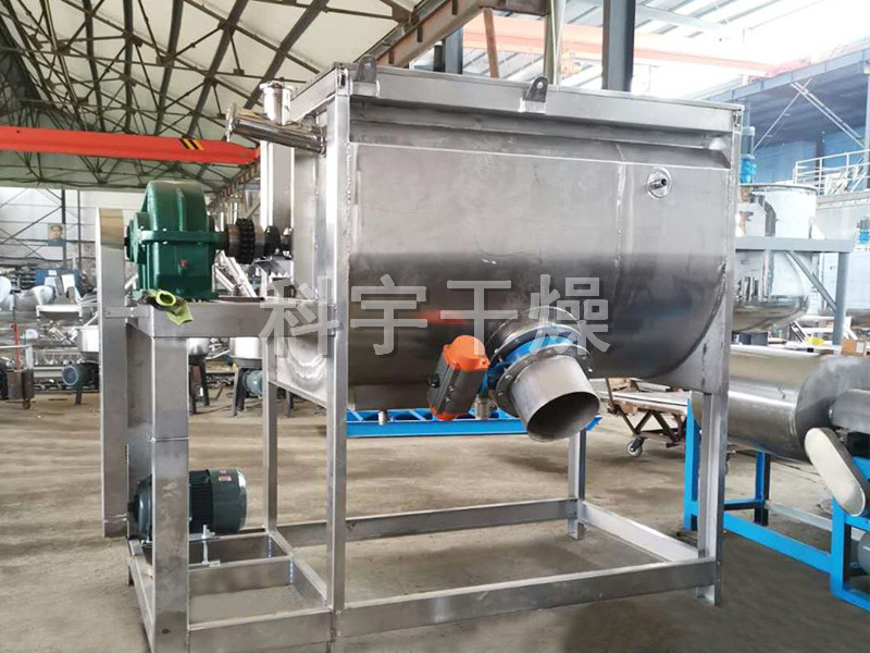 螺带混合机一般用于粘性或有凝聚性的粉粒体的混合以及粉粒体中添加液体及糊状物料的混合,同时由于粘性物料清洗困难的特点,适用于产量大、不经常更换品种的场合混合。