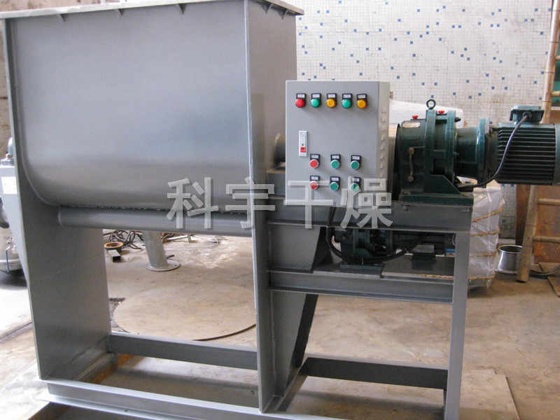 本系列混合机以强烈、高效混合为特点、卧式筒体内两根搅拌等速反向旋转,上特殊布置的桨叶确保物料径向、环向、轴向三向运动,形成复合循环,在极短的时间内达到均匀混合。