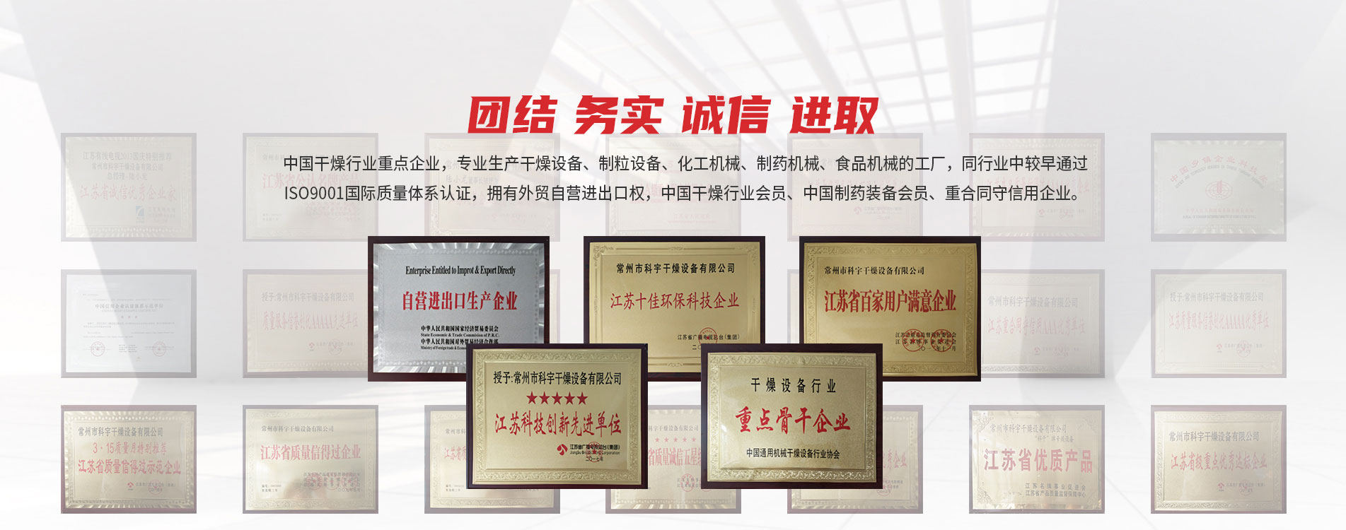 常州市科宇干燥设备有限公司,是中国干燥行业重点企业,专业生产干燥设备、制粒设备、化工机械、制药机械、食品机械的工厂,拥有外贸自营进出口权,中国干燥行业会员、中国制药装备会员、重合同守信用企业。