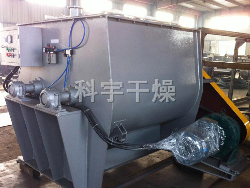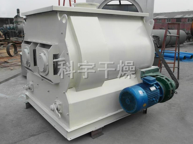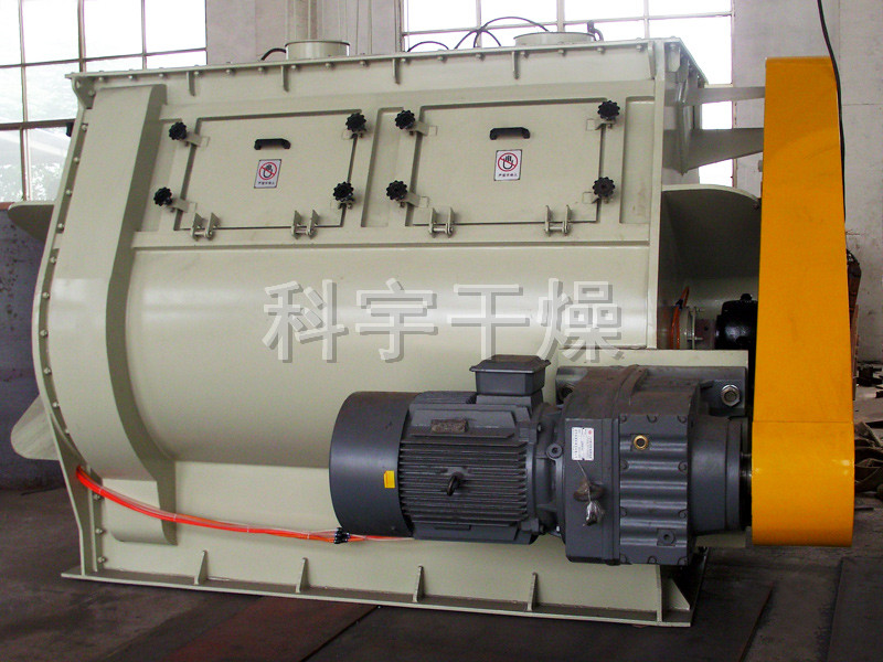 本系列混合机以强烈、高效混合为特点、卧式筒体内两根搅拌等速反向旋转,上特殊布置的桨叶确保物料径向、环向、轴向三向运动,形成复合循环,在极短的时间内达到均匀混合。