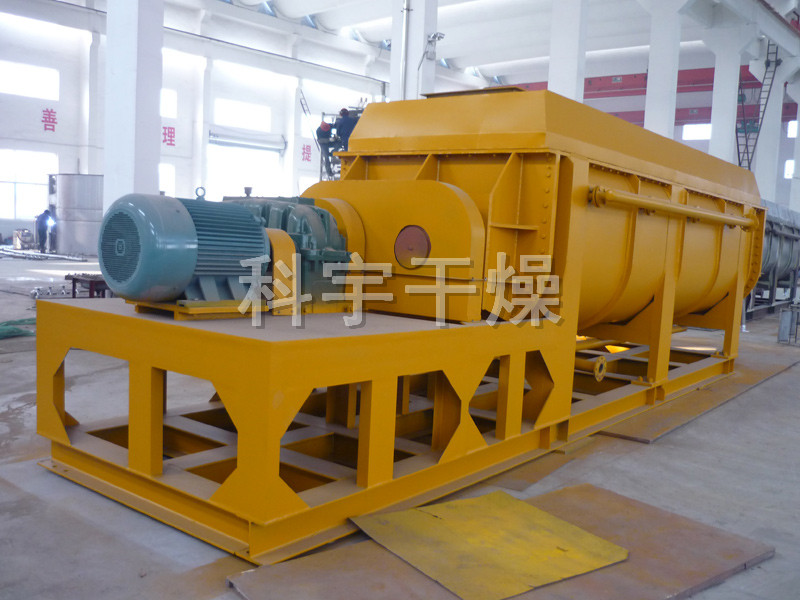桨叶式干燥器是一种在设备内部设置搅拌浆,使湿物料在桨叶的搅动下,与热载体以及热表面充分接触,从而达到干燥目的的低速搅拌干燥器,结构形式一般为卧式,双轴或四轴。浆叶式干燥器分为热风式和传导式。