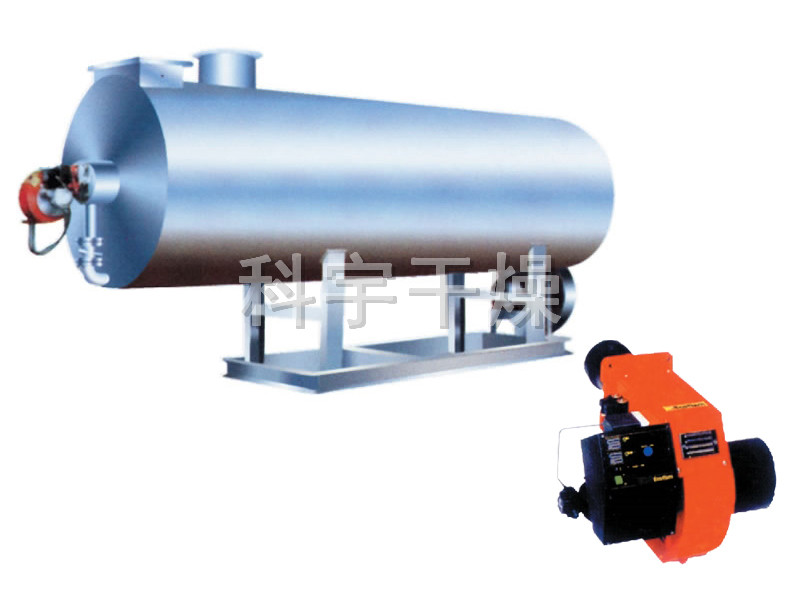 燃料通过燃烧器燃烧,产生高温燃气。并借助具有强化换热措施的热风炉将高温燃气的热量传导给被加热的空气,高温燃气经热量散发后温度降低至250℃后排到大气中。需加热的空气通过选配的鼓风机强送入热风炉,吸热后温度升至额定值从热风出口处送出,当热风温度达到额定温度上限时,燃烧器会自动停止燃烧或自动转为小火焰燃烧,当热风温度降低到额定下限温度时,燃烧器又会重新点燃运行或转为大火燃烧,升温的速度可以调节进风阀的开度来实现。